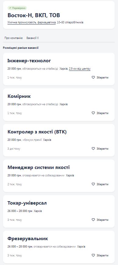 в момент моих последних события я не искала работу так как понимала чем это может закончится, мне в тот момент не нужна была работа, в ходе моих событих и хороших и не очень. Компания нашла меня сама, они мне звонили 3 раз, раз я работала на другом месте работы, другой раз я болела и отказалась, третий раз была по делам и уже решила согласиться, 2,5 месяца ЗП выплачивалась, в январе ЗП перестала выплачиваться, по понятным причинам. Компания находится в стадии банкротства https://youcontrol.com.ua/catalog/company_details/24272981/ для чего это написано, чтоб не оплачивались налоги и не выплачивать во время заработную плату. В январе отключили свет за неуплату, позже и воду, я заходила в электроннубю трудовую налоги не проставлены, пока я об этом не заявила, а что это за компания которая не платит налог за сотрудников, то есть что работал что даром, а работу выполняй и всегда будь на связи, и ночью и днем и в выходной день, а вдруг что-то важное, я для себя отметила, что это немного нет тот формат рабочего процесса, я не привыкла работать в неопределенности, где нет четких чисел выплаты заработной платы, где я думала налог платится, а он не платится, в феврале кинули 2000 грн форма 2 как раз судя по всему наш налог который должен был быть оплачен ранее. Есть 6ка Петя, с виду мужик как мужик, но я начала замечать что его слишком много в итр так как он не занимал должность итр, он там типа охранник. Короче ходит там на всех все докладывает итд, особенно кто сколько чая выпил за смену. Когда начала увольняться, меня не хотели увольнять по соглашению сторон. Она обязана была меня по закону уволить сразу как я захочу, так как являюсь женой погибшего мужа на войне, она со мной спорила, и в итоге кинула меня в блок, Золотой руководитель ***… Ничего не скажешь. Это с таким успехом меня должен был кинуть в блок Генеральный директор ХПЗ к примеру… Судя с ее логики. В общем с трудом я добилась увольнения по соглашению сторон, но мне это стоило не малых нервов. За зарплату, могу сказать одно если до конца этой недели начиная с 12.03.25 по 15.03.25 то эти деньги ей пойдут на здравницу за каждого кому она не оплатила труд. В коллектив в котоый я пришла отличный, но нас там никого нет уже, все ушли. несколько человек осталось им желаю удачи